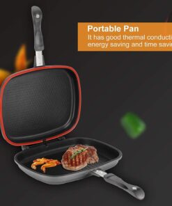 Double-Sided Frying Pan. 32Cm/12.6In BBQ Grill Pan. Double Side Pressure Cooking Grill Pan. Portable Grill Pot for Home Cooking. Anti‑Burn Handle. Grill Cookware Kitchen Supplies