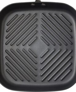 Cucina Hard Anodized Nonstick Grill/Deep Square Griddle Pan. 11 Inch. Gray with Red Handles