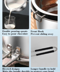 Double Boiler Pot 1200ML/1.1QT. Stainless Steel Chocolate Melting Pot for Melting Chocolate. Candy. Candle. Soap. Wax