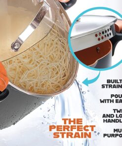 GOTHAM STEEL 5 Qt Ceramic Stock Pot Multipurpose Pasta Pot with Strainer Lid & Twist and Lock Handles. Nonstick Ceramic for Soup. Spaghetti. Rice. Pots for Kitchen. Dishwasher Safe – Copper