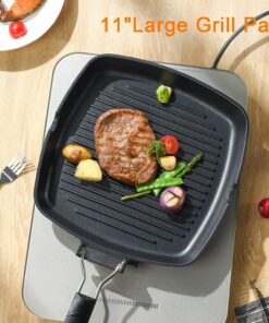 Grill Pan with Folding Handle. Nonstick Grill Pan for Stove Tops. Induction Compatible KBBQ Grill Pan with Pour Spouts. Indoor Square BBQ Grilling Pan… (11 In)