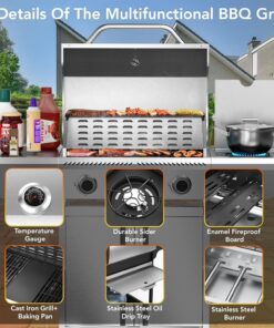 Gas Grill.Heavy-Duty Stainless Steel BBQ Grill.4 Burner Gas Grill with Side Burner.42000 BTU Propane Grill for Outdoor Cooking.Barbecue.Garden and Patio Backyard