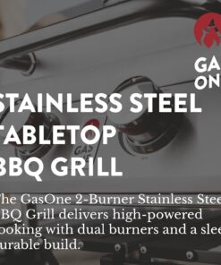 Gasone Portable Propane Grill – 16-Inch Stainless Steel Tabletop Grill – Tabletop Gas Grill with Heat Control and Built-In Thermometer – Large Cooking Area – Ideal for Outdoor. Camping. Travel. RV