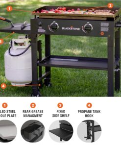 Flat Top Gas Grill Griddle 2 Burner Propane Fuelled Rear Grease Management System. 1517. Outdoor Griddle Station for Camping. 28 Inch
