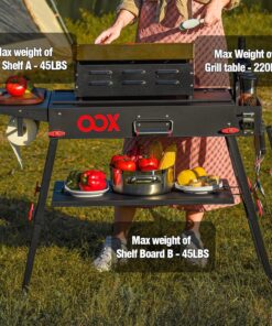 Portable Grill Table with Double-Shelf for Outdoor Prep.Folding Grill Stand Fits Blackstone Griddle 17 Inch 22 Inch. Tabletop Propane Gas Grill. Camping BBQ Cooking. Stainless Steel. Black