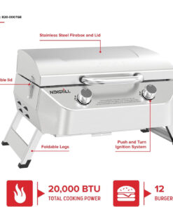 Nexgrill Stainless Steel 2-Burner Portable Gas Grill with Locking Lid. Folding Legs. 20.000 Btus. 251 SQ in Cooking Space. Tabletop Grill for Camping. Outdoor Cooking. Patios. and More – 820-0007GE