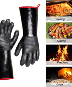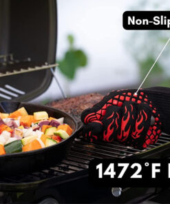 BBQ Gloves. 1472°F Heat Resistant Fireproof Mitts. Silicone Non-Slip Washable Oven Kitchen Gloves for Barbecue. Grilling. Cooking. Baking. Camping. Smoker (Black)