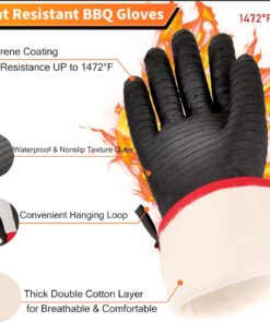 BBQ Gloves – 1472°F Thicken Heat Resistant Gloves W/S-Hook 14 in Kitchen Oven Mitts Waterproof Grill Gloves Oil Resistant Grilling Gloves Cooking Gloves for Turkey Fryer/Baking/Oven/Smoker