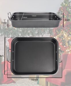 Kitcom Nonstick Roasting Pan. Roaster with Rack – 16 Inch Rectangular Grill Suitable for Turkey. Roast Chicken. Ham. Dishwasher Safe (9.5QT)