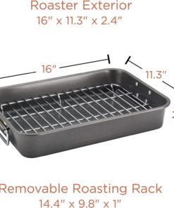 Farberware Bakeware Nonstick Steel Roaster with Flat Rack. 11-Inch X 15-Inch. Gray