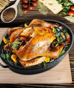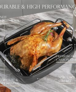 KITESSENSU Nonstick Turkey Roasting Pan with Rack 17 X 14 Inch – Large Chicken Roaster Pan for Oven – Wider Handles & Heavy Duty Construction – Suitable for 24Lb Turkey. Gray