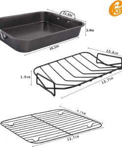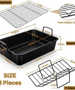 Large Roasting Pan with Rack Set of 3. P&P CHEF 15¼ Turkey Roaster Pan & V-Shape Baking Rack & Cooling Rack for Chicken Rib Lasagna Cookie. Nonstick Coating & Stainless Steel Core. Sturdy & Healthy