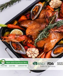 Hybrid Nonstick Roasting Pan with Rack. Dishwasher and Oven Friendly. Compatible with All Cooktops