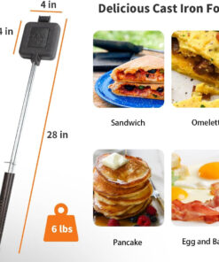 Uno Casa – XL Pie Irons Cast Iron Sandwich Maker – Mountain Japanese Sandwich Maker with Recipe Book – Durable Campfire Cooking Equipment for Toasted Pies. and More