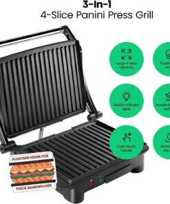5-In-1 Digital Panini Press Grill Sandwich Maker and Griddle Grill Combo with Removable. Reversible Dishwasher-Safe Grilling Plates. Opens 180° for Indoor BBQ or Flat Top Grill