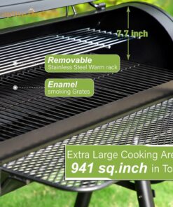 Captiva Designs Heavy Duty Outdoor Smoker.Extra Large Cooking Area(941 Sq.In. in Total) Offset Smoker. Best Charcoal Smoker and Grill Combo for Outdoor Garden Patio and Backyard Cooking