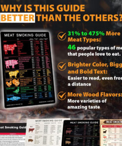 Best Improved Version Accurate Meat Temperature Chart Magnet 46 Popular Meats + Butcher Cuts of Beef Pork Lamb Guide Smoking Wood Flavors Target Time BBQ Pellet Smoker Grill Grilling Accessories Gifts