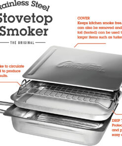 Large Stovetop Smoker – Stainless Steel BBQ Smoker Box W/Hickory & Oak Wood Chips & Recipe Guide – Indoor Outdoor Use – Great for Smoking Thanksgiving Dinner – Barbecue Grilling Gift for Men