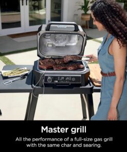 OG850 Woodfire Pro XL Outdoor Grill & Smoker with Built-In Thermometer. 4-In-1 Master Grill. BBQ Smoker. Outdoor Air Fryer. Bake. Portable. Electric. Blue