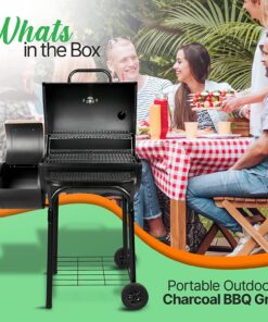 kitchen Charcoal Grill Offset Smoker with Cover. Portable Stainless Steel Grill. Outdoor Camping BBQ and Barrel Smoker (Black)