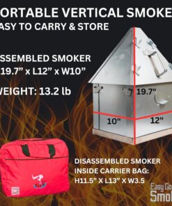 Foldable & Portable Vertical Pellet Smoker – 19.7 Meat Smoker for BBQ Grill. Outdoor Cooking. Camping & RV – Easy to Clean – Includes Carrier Bag. Spoon & Built-In Thermometer – Easygosmoker