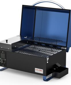 Onlyfire BBQ Wood Pellet Grill Smoker with Digital Control. LED Screen. Meat Probe & 2 Tiers Cooking Area. Portable Tabletop Grilling Stove for BBQ. Smoke. Bake and Roast. RV Camping. Blue