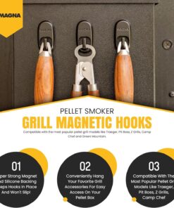 Pellet Smoker Grill Magnetic Hooks 3 Pack – Use to Hang Your Grilling Utensils and Accessories – Compatible with Pellet Grill Smokers like Traeger. Pit Boss. Z Grills. Camp Chef