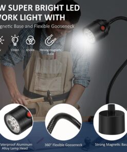 Magnetic Work Light. LED Machine Light with Flexible Gooseneck and Magnetic Base. Shop Tool Lamp for Lathe. Work Bench. Sewing Machine. Grill. Industrial Lighting Black