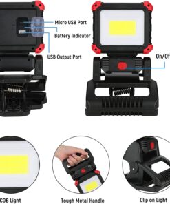 LED Rechargeable Work Light with Clamp. 2100LM COB Magnetic Clip on Worklight 270° Rotating with Mobile Charger. Portable Clamp Work Light for Boats. Car Repairing. Job Site Lighting(1Pack)
