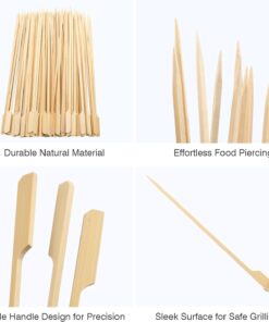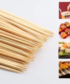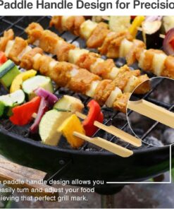 10-Inch Skewer for BBQ Kebab. Unbleached Long Bamboo/Wood Roasting Sticks for Grill -Heavy Duty Thickness -Flat Stick Flag Handle -With Dust-Free Packaging (100-Pack)