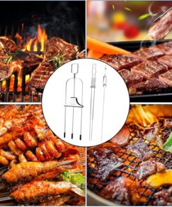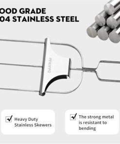 - Premium Material: The kabob skewers are made of Food Grade 304 Stainless Steel. heavy-duty. sturdy. smooth. reusable and durable. not easy to break or deform. Dish washer safe and easy to clean.Further more. the thick and flat prongs support to hold meats and veggies. such as kebobs. beef. chickens as well as keep them from rolling when turning them over.
