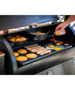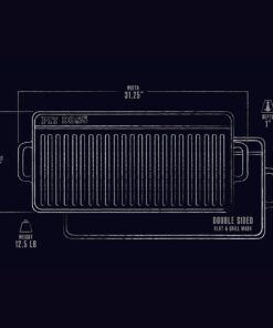 Grilled recipes are endless with the Pit Boss® Cast Iron Griddle. With the smooth side. you’re free to sauté fajitas. scramble eggs. or griddle pancakes right on the grill. The ribbed side brings perfect caramelization and restaurant quality sear marks. from your stove top. The large. portable griddle is perfect for feeding a large crowd. and the evenly heated cast iron works on a variety of surfaces. It heats quickly and evenly while the naturally non-stick surface gets better with each use. The flat side features a grease trough to catch excess drippings. and when you’re finished cooking. use the two helper handles to move the griddle to table instantly. Now every meal can have one-of-a-kind grilled flavor with the Pit Boss® Cast Iron Griddle.