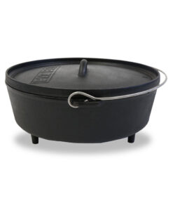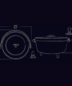 The Pit Boss® Cast Iron Dutch Oven is pre-seasoned and ready to use right out of the box. The kettle holds 8 quarts. has a 14 diameter. can easily accommodate recipes for 16 or more. and has built-in side handles to take the dutch oven from the fire to the table with ease.