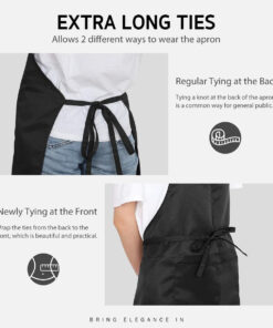 - Wide Coverage- Large bib Apron that covers from chest to knee provides great coverage and protection from kitchen grease. spills and food stains. Note: do not place apron nearby any heated cooking ware or flame.