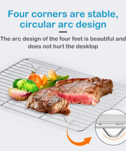 - COOLING DESIGN: The 4 feet are designed to improve air circulation. and the cooling racks have perfectly spaced parallel lines to prevent food from slipping through the gaps while maintaining full contact with the air to maximize roasting and cooling.