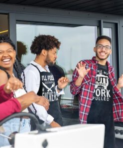 With an adjustable neck strapTwo black fun aprons are suitable for most people because they have adjustable neck straps. You can adjust the shoulder strap to the length you like. |