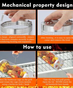 - 【How to use it?】Just put the prepared food into the grill baskets. then fasten the lid on the top of the grill. Finally. it can be roasted on charcoal fire or other. To keep the food uniform heating. you can use our fork instead of your hand rotate the BBQ grill. Finally. sprinkle some of your favorite seasoning and use anti scalding gloves or our two hooks to remove this grill basket to enjoy your delicious food. it’s not hard at all.