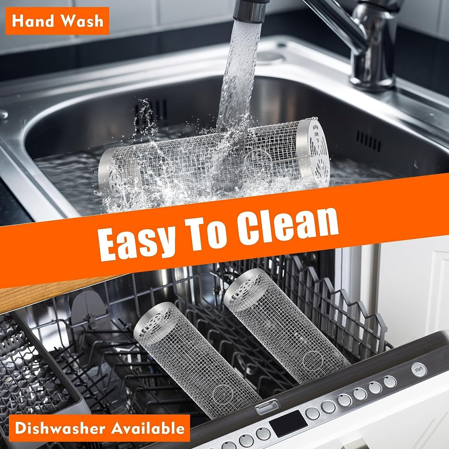 - 【Easy to Cleaning】Rolling grill baskets easy to cleaning. dishwasher or hand washing. It supports dishwashers and hand washing. If you want to add shine to it. you can soak the Grill BBQ Net tube with cleaning supplies in advance. then use a wire brush (preferably a wire brush with a handle for safety) to simply brush it or rinse it with a high-pressure water gun. then rinse it with clean water and let it dry.