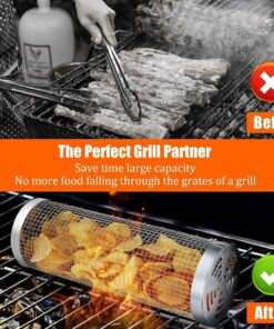 - 【Advantages of 360 °Rolling Grilling Basket】This grilling basket can be easily 360 degrees of rolling. uniform heating. very convenient for saving time. Perfect for both Gas. Electric. Charcoal grill. etc. ensuring that your food is grilled evenly and eliminates the need for constant flipping.No more standing around stirring and flipping smaller items on the grill or losing them through the grate! just turn the basket a few times and done.