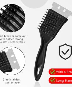 - Safe and sustained material: the bristles wire of the brush is made of stainless steel. which makes it more strong and sustained when using. and the handle of the scraper is made of plastic. the dotted-design handle makes it hard to slip away from your hands when there is oil on it