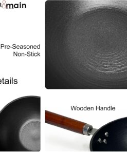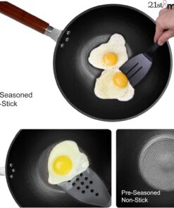 - Nonstick and Rust Proof- It is pre-seasoned and ready to use. So not only do you get the superior taste from a pre-seasoned wok. but you also get the correct feel while making the food. It is Nonstick Wok Stir-Fry Pan. non stick pan. wok cookware.