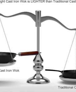 - Light weight and Commercial Grade-Flat Bottom light weight 11 Inch cast iron wok. commercial grade. The flat bottom and light weight make handle easier and cook better. Flat base is sturdy and safer. Best choice Asian Food wok pan and Chinese wok pan. It is more affordable compared to stainless steel or even enameled cast iron. and will last forever due to its durable nature. It is best cooking pan. grill pan. cast iron cooker.