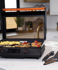 There’s nothing better than the scent of freshly-cooked food. with friends & family enjoying delicious. juicy burgers together under the same roof. Our E-Series 22-inch tabletop electric camping griddle will turn your indoor kitchen or backyard into Michelin-star worthy cooking space so you can enjoy a true barbeque experience! Features: Versatile: Featuring 1200 watts of heating power. this is Blackstone’s first electric nonstick griddle that’s suitable for both indoor and outdoor cooking. Spacious cooktop: 312-square-inch cooktop surface has space to cook up to 12 pancakes. 12 eggs. 12 hamburgers. 9 steaks. 16 bacon strips or 12 chicken breasts. Large LCD digital display for easy readability. Patented rotate and remove glass hood: It provides sleek protection and traps heat for cooking and steaming. Easy cleanup: Non-stick ceramic titanium-coated rectangular griddle surface for easy cooking and clean-up. Dishwasher-safe grease cup: You may clean the grease cup in the dishwasher along with other dirty dishes. EZ-Touch control dial: Smooth controls for 2 independent cooking zones. Grease management system: Clean-catch. patented rear-grease management system makes cleanup quick. easy. and discrete. About Us: Blackstone products are designed and engineered in the USA with the latest technology and innovation. but we are more than just another outdoor cooking appliance company. Our main focus is on our consumers and designing quality products that yield the best results. Our goal is to bring family and friends together with the most efficient and functional griddles on the market. Join the Griddle Nation and cook anything. anytime. anywhere with a Blackstone.