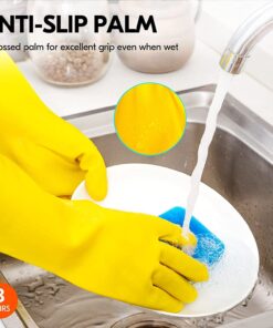 Vgo Reusable Household Cleaning Gloves. Rubber Dishwashing gloves. Extra Thickness. Long Sleeves. Kitchen Cleaning. Working. Painting. Gardening. Pet Care (HH4601.Yellow)