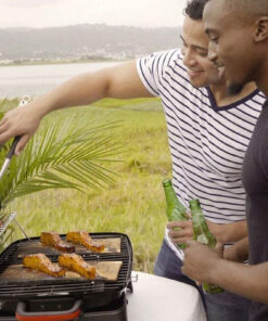 Meet the convenient. compact & powerful Megamaster one burner gas tabletop grill. It’s convenient. compact & powerful. With a roomy three hundred & sixty Of total cooking space. you can grillup to 17 burgers at once. the main stainless steel burner fires up instantly at the press of button. which provides 11. 000 BTU of heat. the durable porcelain enameled firebox retains heat & the smooth surfaces make cleaning a cinch. the black powder-coated lid features a precise. built-in thermometer The sturdy lid easily locks & the legs conveniently fold away in transit to your next adventure. built for easy transport & neat & easy storage you can take your one-burner gas grill tailgating or wherever your grilling takes you. there’s a big world out there. Pack your Megamaster 1-burner propane gas tabletop grill & go explore