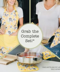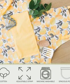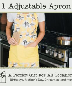 - High Quality Manufacturing: Our apron’s size is 27” wide and 33” long to provide full coverage for people of all sizes while cooking or baking. The neck loop has an adjustable buckle and the back easily ties together keeping your apron in place. The durable 100% cotton fabric is easy to wash. Machine wash on cold. Tumble dry on low.