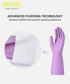 4 Pairs Reusable Dishwashing Cleaning Gloves with Latex Free. Cotton Lining. Kitchen Gloves. Purple. Medium