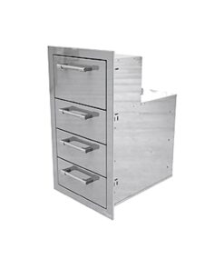Alfresco AXE-3DRTH-SC Triple Drawer and Towel Holder Combo. 17-Inch provides heavy-duty storage drawers to enhance your outdoor kitchen. Constructed with premium 304 stainless steel and soft-closing. smooth-gliding full-extension slides. these storage drawers are built to last. The towel holder drawer features a spring loaded towel bar that holds a standard size paper towel roll. Complete your outdoor kitchen with help from Alfresco!