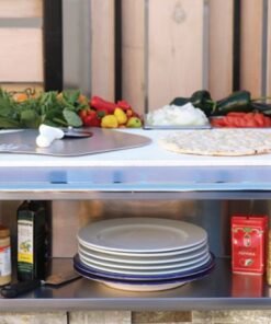 Alfresco APS-30P Plating and Garnish Center with Food Pans. 30-Inch provides a restaurant-inspired presentation center that will enhance your outdoor kitchen. Create food presentations like a professional with this plating center that includes a plate shelf for storage. removable plastic cutting board. removable food well. and (4) NSF food pans. Upgrade your outdoor kitchen with help from Alfresco!