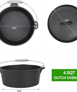 8 Piece Pre-Seasoned Dutch Oven Cooking Set Cast Iron Camping Kitchen Cookware Bakeware Skillets & Square Grill Pan W/Vintage Carrying Wood Box for Ourdoor Home BBQ Baking